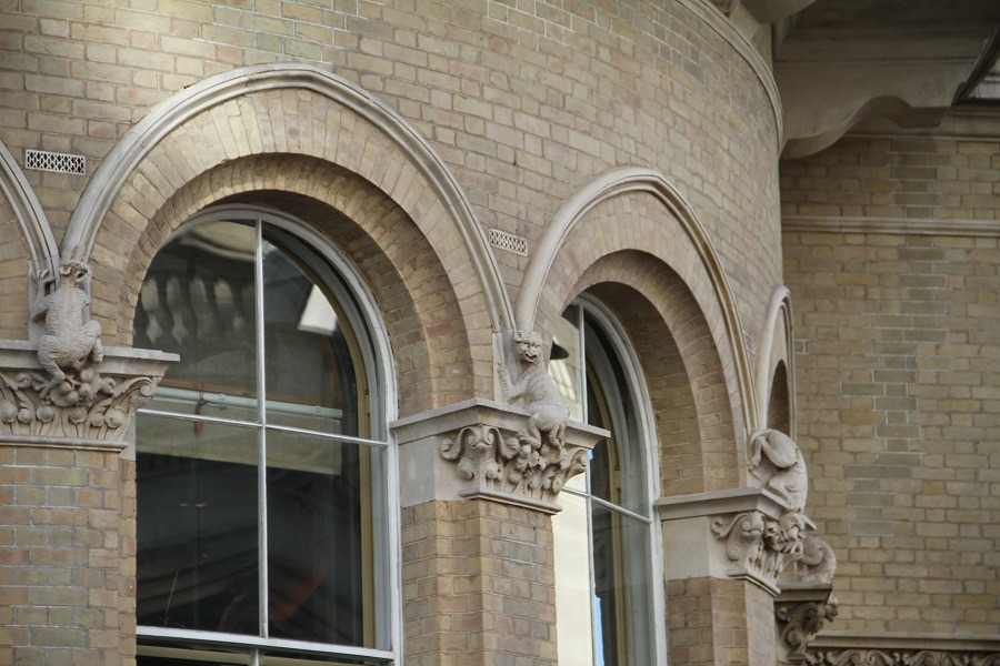 Due to the architectural characteristics of this imposing Grade II listed property, the company’s patented façade gommage® technique played a critical role in its restoration. Essentially Italianate in style, the façade is adorned with eclectic Gothic elements and sculptural details, including griffins and sphinxes below the heavy eaves cornices and, together with lions and lizards, on the imposts of lower-storey window arches. Fashioned from moulded cement on slate armatures, each of these intricate embellishments required the gentlest and most meticulous of cleaning in even the most inaccessible of crevices.